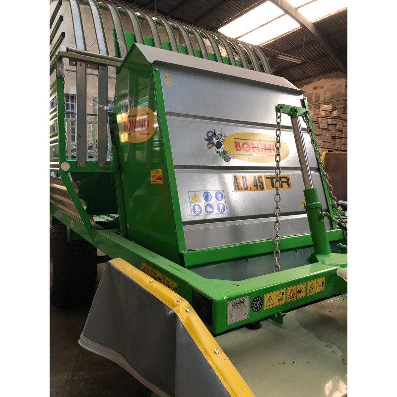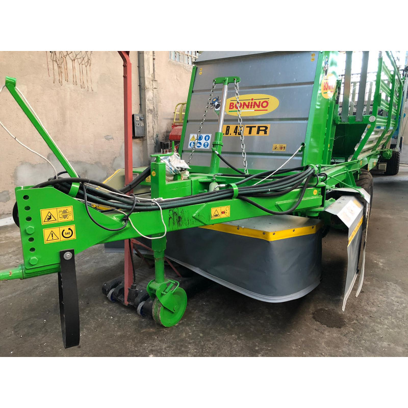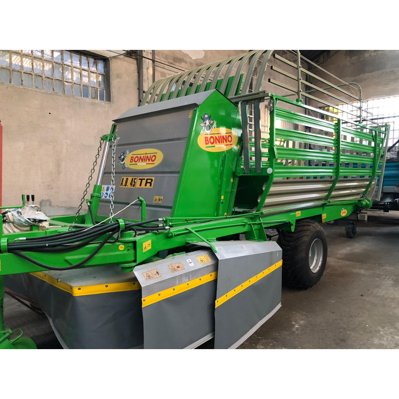 AUTOCARGADOR ROTATIVO BONINO AB 45 TR El segador autocargador de remolque tiene una barra segadora giratoria de dos tambores ajustable en altura que permite un corte limpio y preciso hasta en terrenos ondulados. Cargar el producto cortado sin dejarlo caer al suelo, así, se garantiza una limpieza perfecta del forraje.
